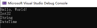 | public static void ShowTypeName(int i) {     Console.WriteLine(i.GetType().Name); } public static void ShowTypeName(string i) {     Console.WriteLine(i.GetType().Name); } public static void ShowTypeName(DateTime i) {     Console.WriteLine(i.GetType().Name); }